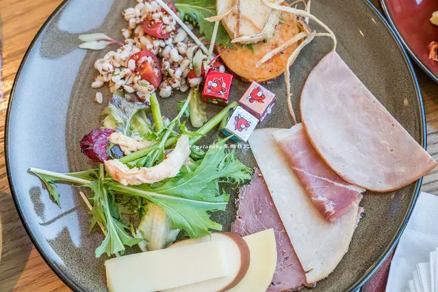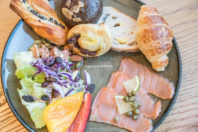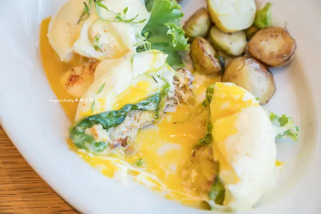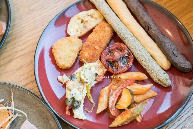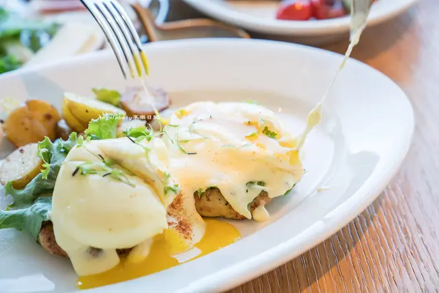 份量不多不少,吃起來很優雅...記得去拿餐檯上的麵包沾上蛋黃液喔