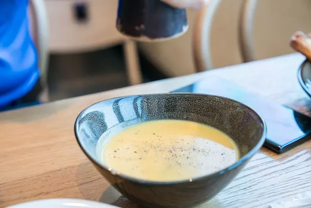 盤上一小盅牛排醬汁,建議跟服務人員要海鹽、胡椒