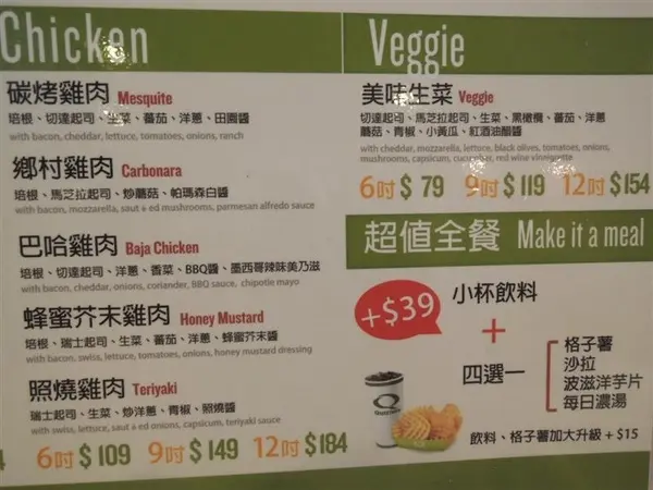 還有全素食的美味生菜路線 六吋79 9吋119 12吋154