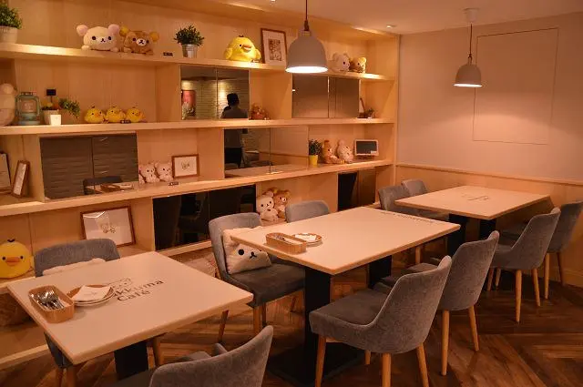 這家咖啡館很不簡單喔!是全球首間獲得授權經營的拉拉熊主題餐廳。整間咖啡館佈置得十分溫馨,除了牆面有可愛的拉拉熊主題彩繪外,每個角落也擺放了許多拉拉熊公仔玩偶。