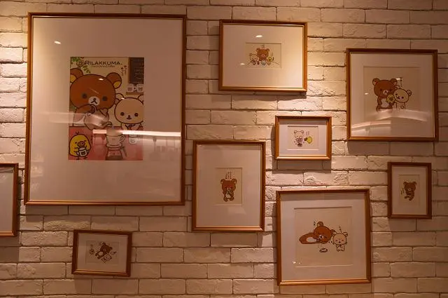 幾乎每個座位都有小抱枕,如果幸運的話,還有更大隻的拉拉熊玩偶陪用餐。我們的座位旁的牆上有好多畫框,可以欣賞拉拉熊的不同姿態。