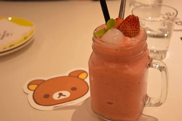 我們的飲料點了一冷一熱。「草莓雪泥」(180元)很適合炎炎夏日來上一杯,沁涼的口感搭配酸甜的滋味,裡面還可以找到拉拉熊造型的果凍喔!「熱榛果拿鐵」(150元)表層則有著可愛的熊熊,讓人捨不得破壞,喝起來充滿榛果的香氣,香濃滑順的口感,讓人感受到暖暖的氣息。