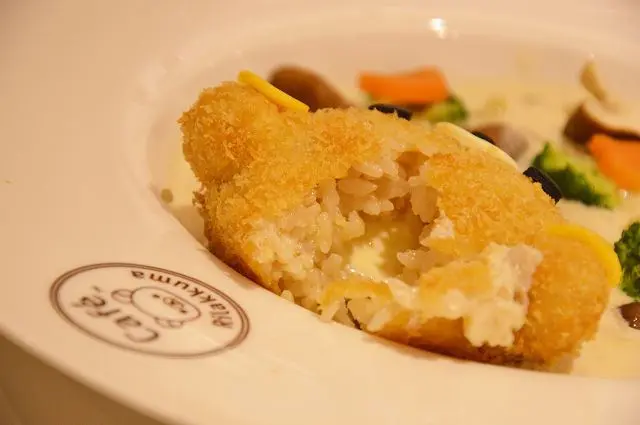 萌翻的熊熊頭部,是炸得金黃色的起司飯球。
