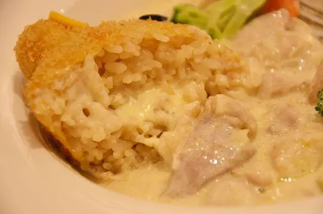 切開後會流出熱呼呼的起司醬,搭配著米飯入口,整體口感有點像是燉飯,這道表現也算不錯。