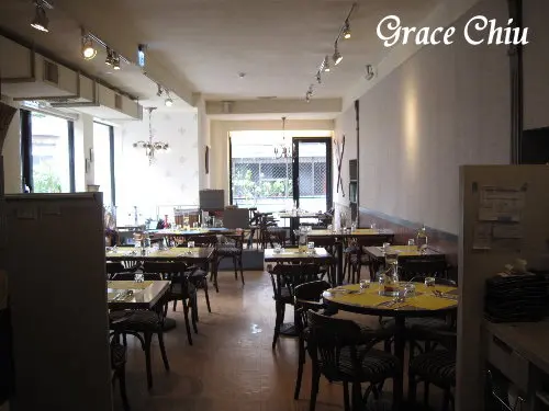 這是一間長型的建築,裝潢外觀帶著雅緻風情,店內乾淨整潔,落地玻璃讓室內採光明亮,室內的佈置也頗為雅緻,我被帶到較底部的二人座位區,桌上有擺著加了檸檬片及小蕃茄的水瓶.