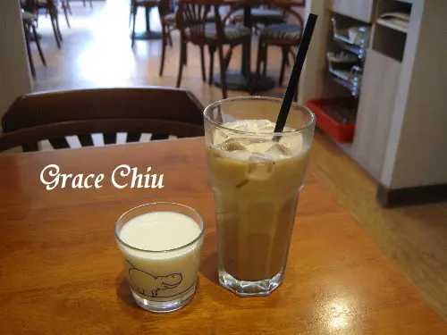 餐點都有附二杯飲品,一杯是餐前飲料(我選了冰牛奶),附餐飲料(我選了冰咖啡,店員會事先詢問咖啡要不要加奶或糖),二杯飲品一同先行上桌.