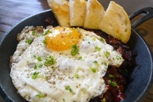 像配鍋裡的附贈配料就超讚 軟嫩的太陽蛋,蛋汁的濃稠緊附著肉絲