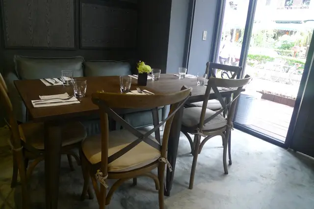 在推開厚門後映入眼簾的是部分挑高 部分兩層樓的用餐格局