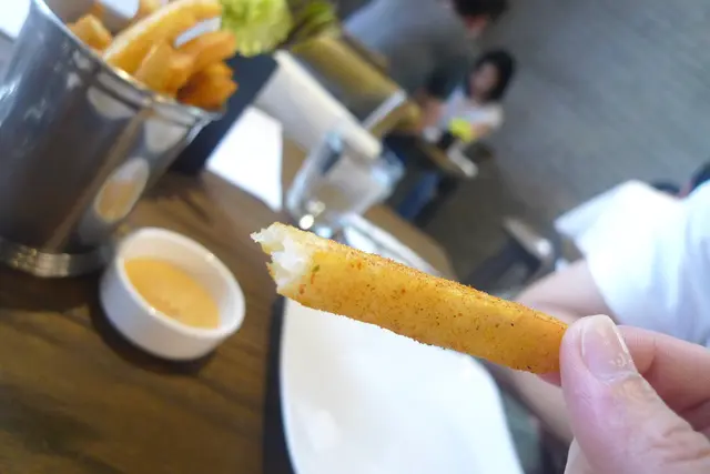 雖然雞胸肉是先醃後炸,肉質軟嫩多汁 搭配上手工醃漬洋蔥,也是鹹甜滋味很特別