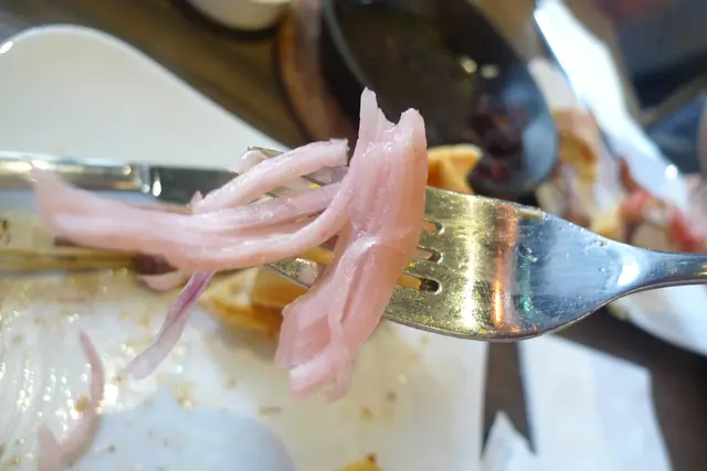 這真美味 肉嫩、鬆餅軟脆,還有酸甜洋蔥十足開胃