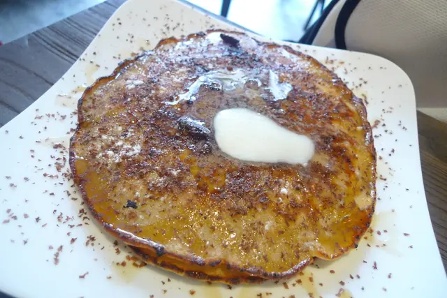 微甜帶點焦香的軟綿煎餅 沾上苦甜巧克力