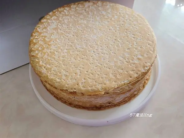 製作千層蛋糕 必須一層一層把蛋糕皮蓋上