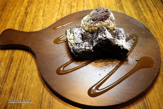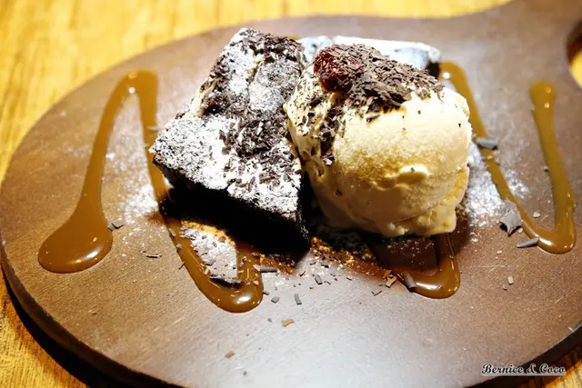 一球香草冰淇淋香香甜甜的,布朗尼綿綿蜜蜜的不甜不膩