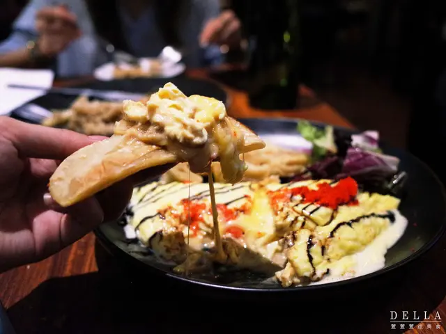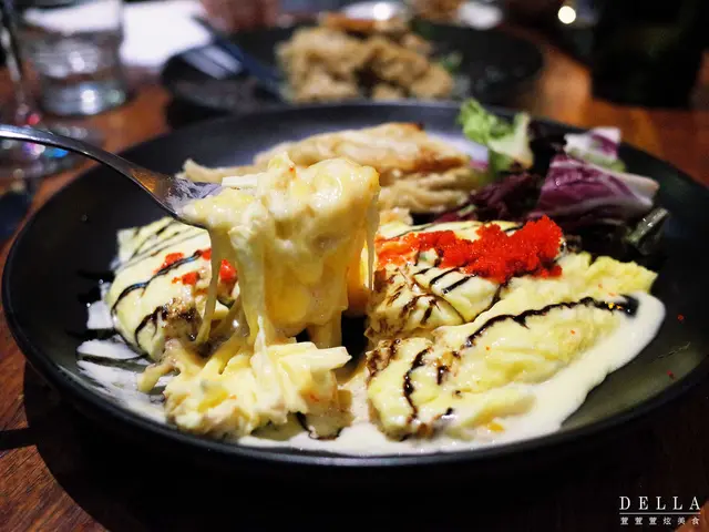 歐姆蛋中的材料不複雜,由蛋、牛奶、起司製作而成,上頭撒上飛魚卵,再淋點陳年紅酒醋醬