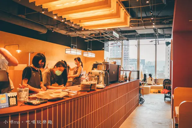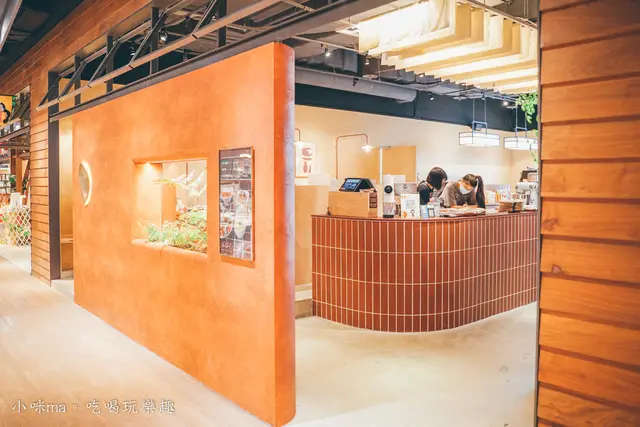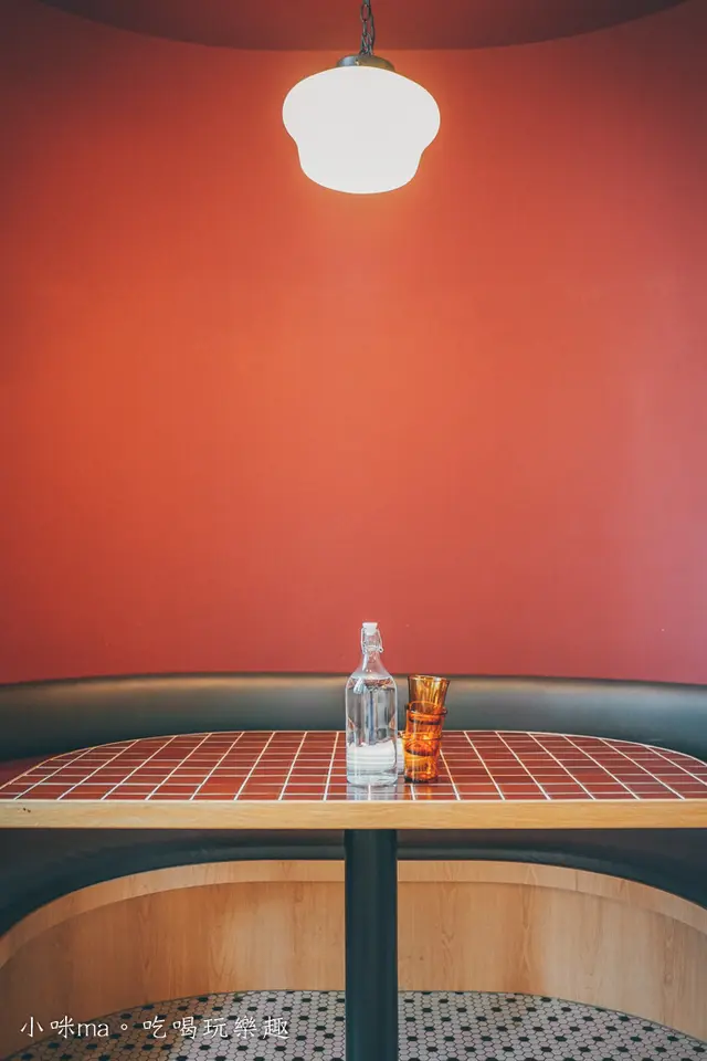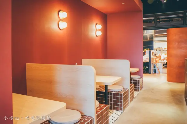 四人隔板空間好簡約,紅棕色的牆面配上色塊椅座是不是好文青