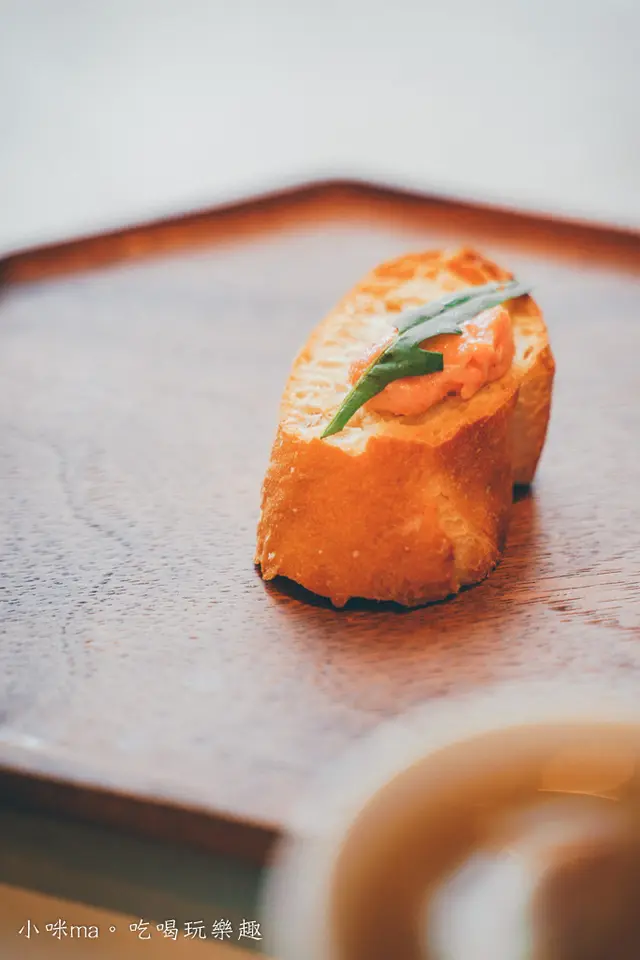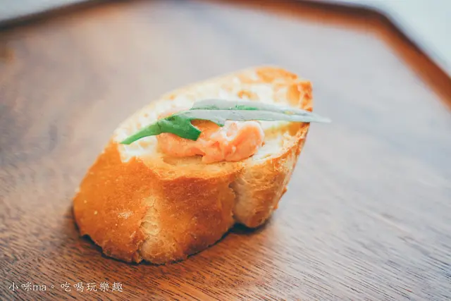香Q有咬勁法國麵包外酥內Q,搭配明太子的鹹香風味,很有法式前菜的感覺