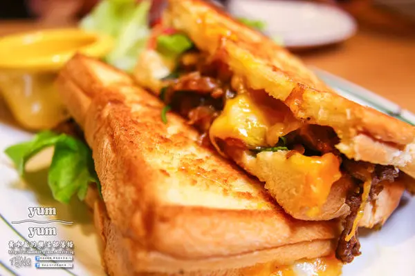 吐司也是特別鬆軟,夾了大量的起司和牛肉內餡,