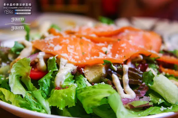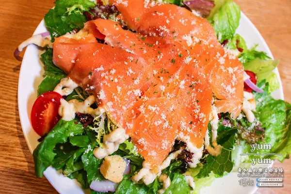 一般坊間也常見的煙燻鮭魚沙拉,用料極為豐富呢!