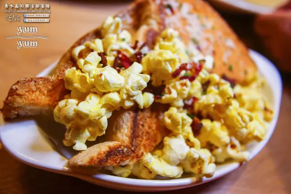 鹹味的爆米花配上乳酪吐司,再附上一個玉米濃湯湯品。