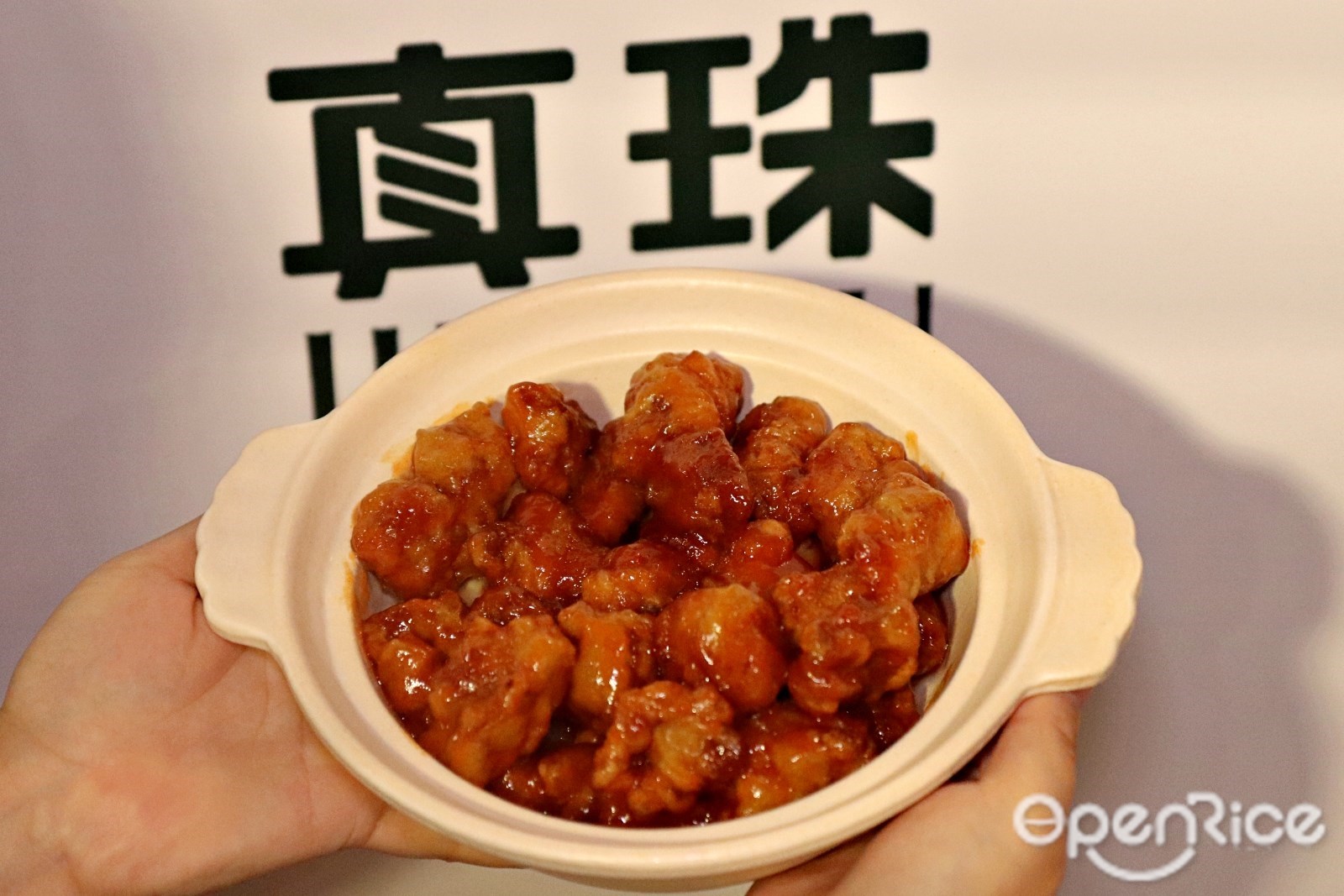 「真珠」則是帶來自回憶裡的經典好手藝,料理仙女「阿貝師傅」的「貝氏糖醋櫻桃肉」,由史上最年輕特級廚師小當家帶來記憶中媽媽親手料理的溫柔美味,豬肉的酸甜可口與香醇清爽的醬汁,以油花均勻的梅花豬肉切丁、油炸至表面黃金色澤,再以白醋、番茄醬以及砂糖調製成酸甜適中的糖醋醬汁,將豬肉裹上醬料快速翻炒,整塊肉完整地吸附了濃郁醬汁,乍看下宛如漂亮的櫻桃色澤,香醇濃厚的氣味撲鼻而來,讓人口水直流,吃下一塊梅花豬肉,肉質彈嫩有嚼勁、越嚼越香。