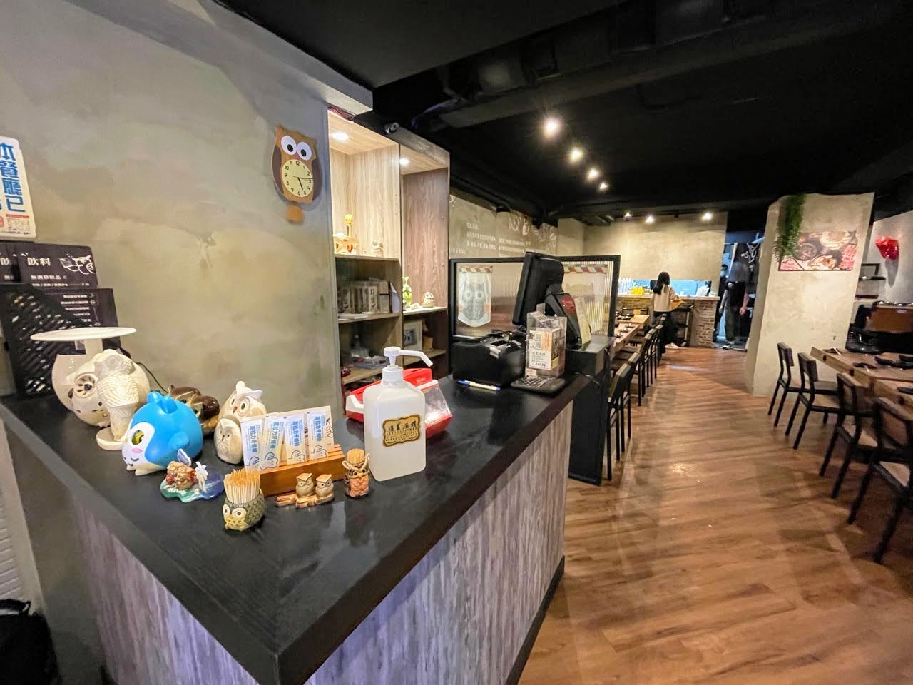 一進門的玄關有一個等待區,旁邊還有一隻霓虹燈做的貓頭鷹蠻可愛的。