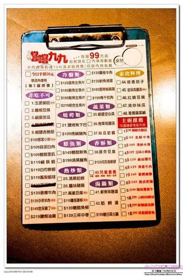我的媽媽和婆婆每年過年時總是從早忙到晚,只為了張羅全家大小除夕要吃的團圓飯,不過通常等她們忙完也累到沒胃口品嚐了~地點剛好就在桃園婆家附近,要前往品嚐也很方便!來到店家門口,看到明亮的燈光,給人很溫馨的感覺~店內的裝潢很現代也很乾淨,不太像一般的熱炒店舊舊髒髒的感覺,店內座位很多,我們抵達時,客人已經是坐滿滿的囉~門口掛著紅燈龍,是不是很有過年的氣氛?【嚐嚐九九】平常是熱炒店,但是接近過年時會推出年菜,一般年菜都是冷凍的,但是他們主推是當天現做,所以食材是很新鮮的!開運團圓套餐6菜1湯(原價4680元,優惠價3980元)幸福圍爐套餐9菜1湯1甜品1水果(原價7670元,優惠價5980元)為了因應現代人過年時會出去玩,常因此提早吃團圓飯,所以店家提早兩個月開賣年菜,在桃園可以自取的是當天現做熱呼呼的年菜,其他縣市也是當天現做,急速冷凍宅配。為了讓大家了解年菜的內容,店家還特製半立體菜色照片,感覺很逼真,可以直接從照片挑選自己想要的年菜。現在有一個很優惠的方案,就是訂購年菜滿2000元就送2000元的折價券,下一次來消費滿1000元就能折200元,也就是打八折的意思,好划算呀!優惠活動只到105/01/31而已,要把握時間訂購喔!店家每天還會推出一個菜色是半價50元,每桌限點一次,像這天我們去的時候就是『川燙小章魚』是半價50元【嚐嚐九九】就是由照片上的五位廚師為股東,一同投資開的餐廳,所以菜色都很美味而不馬虎~這壺熱的『金桔茶』是店家招待的,平常一壺89元也不貴,平常好像是冰的仙草茶,但是天氣冷時就改成熱的『金桔茶』~這是店家招待的小菜-【五味醬拌黑木耳】,因為數量有限,聽說通常比較早到店家的人才吃得到白飯是無限量供應,所以採自助式最特別的是店家還提供豬油和醬油讓客人可以拌飯,豬油本身還有油蔥的香味,拌起飯來特別香特別好吃~【花開富貴滿堂蝦】$620元蝦子排放一圈如同花朵般盛開,20尾象徵著十全十美,喜氣洋洋呢!這道菜是採用醉蝦,將蝦子浸泡在中藥材和酒裡,所以是冷盤,店長說:如果家中有長輩不太冷食,也可以加熱喔!中間就是浸泡醉蝦的中藥材,紅棗、枸杞、當歸、蔘鬚、川芎等看起來就是真材實料呀!而且蝦子是使用無毒蝦,讓人吃起來特別安心!蝦子新不新鮮從剝殼就知道,殼一點都不黏蝦肉,非常好剝,可見蝦子非常新鮮!蝦子吃起來Q彈很鮮甜,微微的紅露、米酒香,更添風味!【竹報平安賀團圓】$400元10個小粽子排在盤子裡,看起來小巧可愛又特別!打開粽葉,裡面是古坑筍絲、上等芋頭、東港櫻花蝦等食材,讓Q彈糯米糕吸飽了高湯,一陣陣的香味撲鼻而來~櫻花蝦和筍絲撲滿在粽子的上方藏在粽子下的芋頭十分綿密,讓婆婆讚不絕口呢!店長非常好客,又招待了我們一份今日特價的川燙小章魚,小章魚非常新鮮,川燙後一點腥味都沒有,沾上哇沙米醬油非常對味、好吃!半價50元實在是太划算了!吃到一半,發現店家居然還有呼喊精神口號呢!店員賣命的表演,獲得全場客人的掌聲喔!【嚐嚐九九】從店名就知道是以熱炒99元起為主打,從菜單來看,一點都不貴呢!像鳳梨蝦球才119元,也太便宜了吧?下次一定要找機會來吃熱炒!握拳!店家招待【清炒水蓮】$109元以薑絲和麻油清炒水蓮,清爽而不油膩,在滿桌的大魚大肉下吃到這道,感覺營養均衡,很健康!【鴻運富貴金元寶】嚴選豬蹄膀富膠原蛋白,搭配紅麴與當歸、蒜頭及陳皮、草果等,慢燉3小時至入味看看這油油亮亮的外皮,怎麼能把皮滷得這麼美呀?看起來就十分美味!筍干吸飽了滷汁,脆脆的口感加上鹹香甘甜的醬汁,好下飯呀!而且蹄膀已經滷到軟透,用湯匙輕輕一撥,皮肉就自動分離了!難怪店長說這是老人和小孩最愛的一道菜,因為幾乎是入口即化,不用擔心咬不動~而且豬蹄膀最怕太油,吃多了會膩,但是精選的豬蹄膀不但沒有豬腥味,也不油膩喔!【鴻運招財佛跳牆】是嚐嚐九九最具人氣菜餚之一,也是閩菜之首,遵循台式佛跳牆古法製作,多種食材以高溫燜燉熬製湯頭,其精華完全融合,風味甘醇可口。裡面的食材有芋頭、筍片、栗子、香菇、魚皮、豬肚、鳥蛋、豬腳丁、排骨、蒜仁、冬粉翅等,用料非常豐富!隨便盛起一碗,都是滿滿的料,食材的精華幾乎都融在湯頭裡,非常美味!排骨也是先炸過,非常入味!芋頭也好綿密,這道菜頗受婆婆的好評,因為佛跳牆除了備料麻煩之外,還要花時間燉煮,能做出一道好吃的佛跳牆實在是不容易呀!【香榭大道乳酪條】吃完了大魚大肉,總是需要甜點來劃下完美的句點!香醇濃郁的原味乳酪條以甜、美、柔、滑的獨特口感取勝,色澤微亮傳出陣陣濃郁乳酪香的完美傑作!吃起來口感綿密細緻、入口即化,中式的餐點+西式的甜點,真是令人滿足的一餐呀!店家還有其他活動,壽星生日當天內用消費會送一道99元的菜呢!晚上9點後來用餐送清涼飲品乙壺!整體來說,嚐嚐九九的開運年菜料理都蠻好吃的,豬油拌飯讓公公吃了八碗飯!讓一向堅持要自己料理年菜的婆婆也心動了,拿著DM找舅媽要一起合買呢!訂購很方便,又有買2000元送2000元的活動,太超值了~而我則是對熱炒很有興趣,很想找機會來品嚐看看~ ◎體驗內容嚐嚐九九(桃園中壢店):相聚圍爐好時光!開運年菜料理,3至6人免費體驗!內容包含:品項數量竹報平安賀團圓1份鴻運富貴金元寶花開富貴滿堂蝦鴻運招財佛跳牆香榭大道乳酪條白飯※視到店體驗人數提供,可續份※