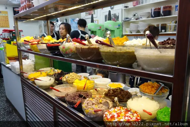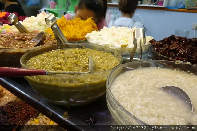 這邊的料是屬於比較傳統,綠豆、紅豆、大豆、芋頭、芋圓、四果、蜜餞等等