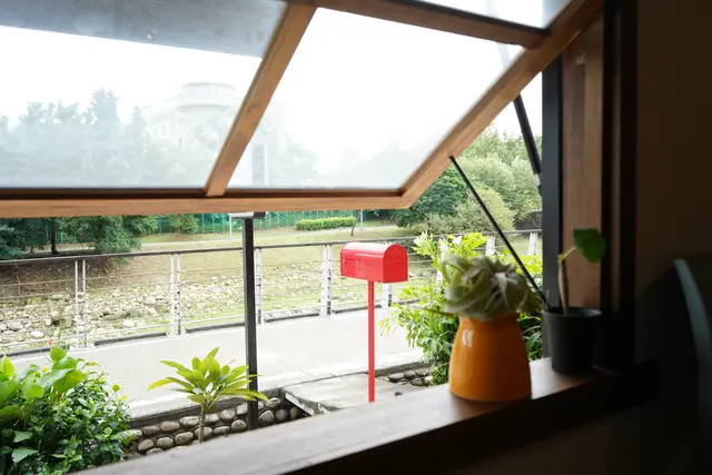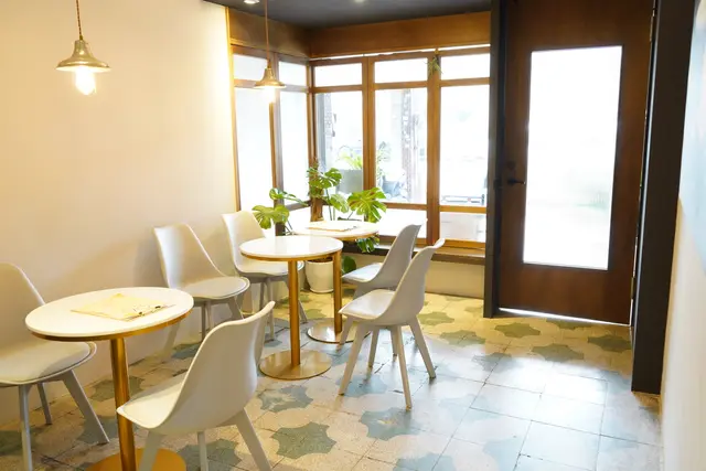 內部屬於狹長型空間,主要座位區設在店內後半部、靠近老街溪步道的那一側