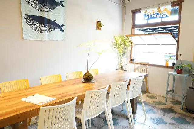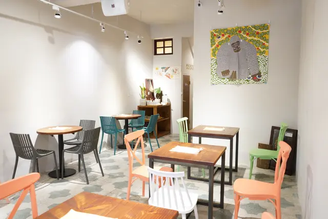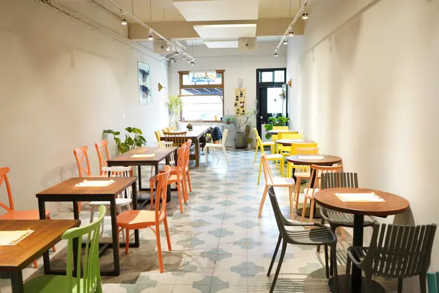 後半部用餐座位,用了五顏六色的椅子呈現出色彩豐富度,