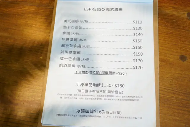 因為每天提供的咖啡豆種類非固定,所以需直接洽櫃台
