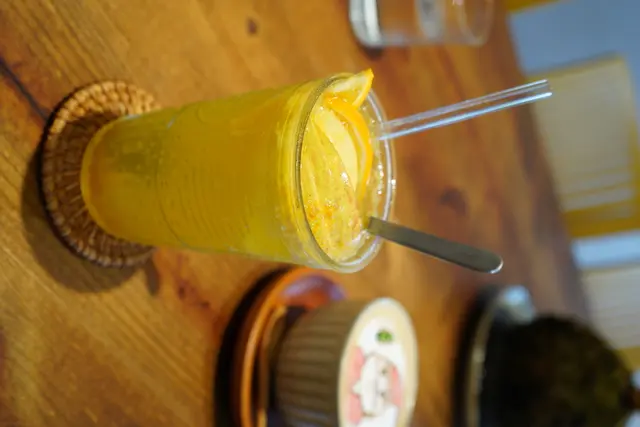 感覺是用原味氣泡水、柳橙汁及柳橙/蘋果水果切片搭配起來的一杯飲料,