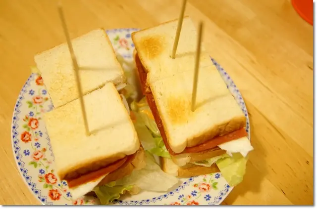 原本應該切成2塊三角形的吐司,老闆貼心的看我有帶小孩同行,所以直接切成方便入口的四小塊