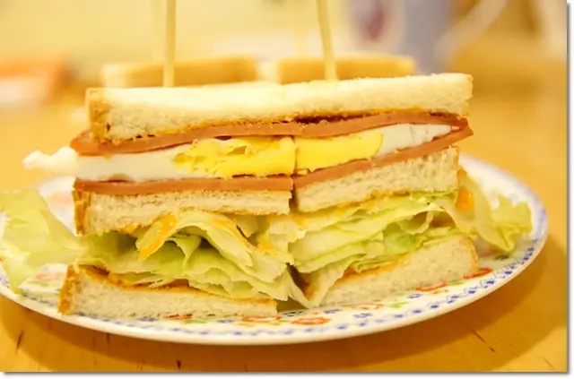 內容物除了有兩片火腿之外,還有荷包蛋、生菜及沙拉醬,整體口味不油不膩很清爽~是名符其實的"輕食"