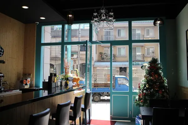 店內基本色調以蒂芬妮藍色跟白色為主,簡潔明亮,很舒服。分一樓、二樓,一樓吧檯可以欣賞鬆餅熱呼呼的製作過程,但是必須忍受義大利麵的油煙味。油煙味是店家小缺點。