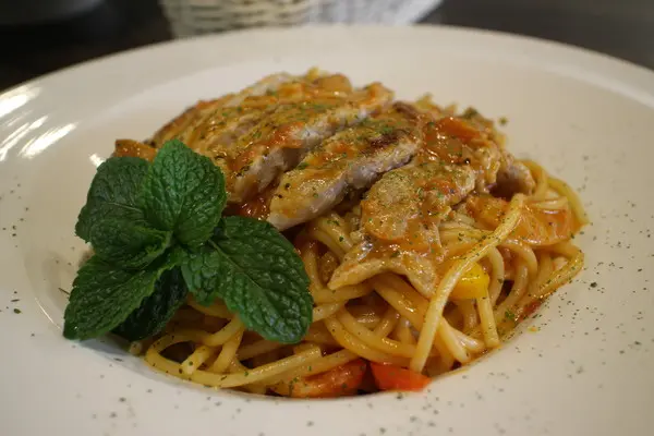 迷迭香草豬佐甜椒麵(紅醬) $179