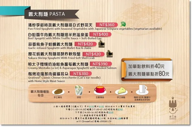 主食類採套餐式供應,可改單點折價$80;至於飲料也可換成單點品項,可折價$40