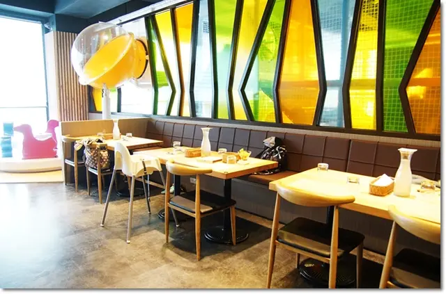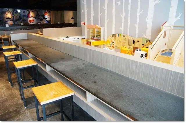 倒是上方的那顆透明圓型物體,原來是從主遊戲區裡延伸出來的,若坐在這區用餐還可以跟小孩有互動咧