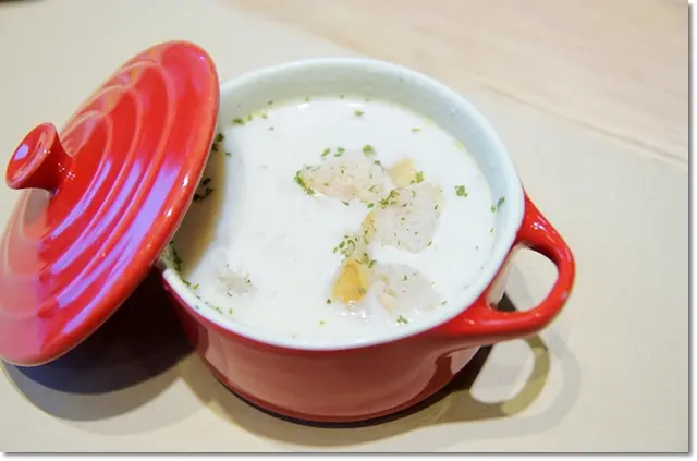類似蘑菇奶油濃湯的滋味,有著恰好的鹹度以及黑胡椒香氣,蠻好喝的!