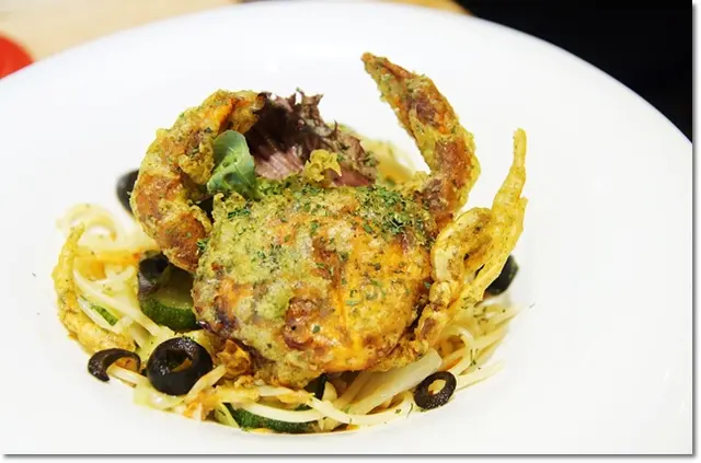 櫻花蝦義大利麵搭酥炸軟殼蟹 NT$420