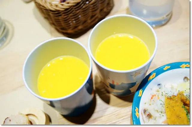 主食是:奶油燉飯+魚片+蟹管肉、另有飲料:柳橙汁