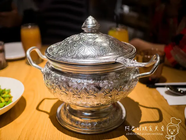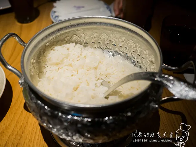 ▼白飯上桌囉,用很有泰國味道的錫器裝著。