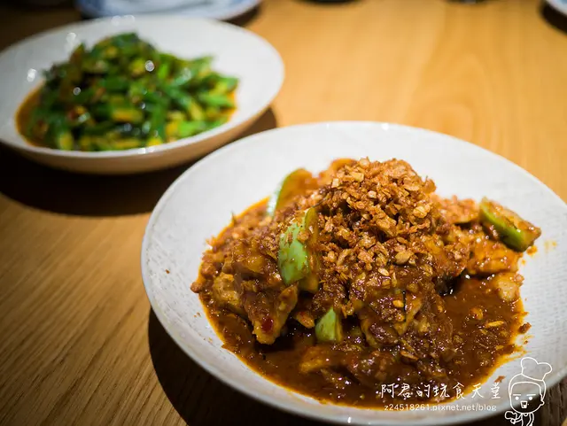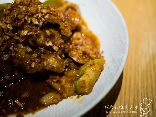 ▼第二道菜,泰式圓茄炒松阪豬,這道個人挺喜歡的,先將松阪豬烤過,脆嫩的松阪豬搭配圓茄跟羅旺子膏拌炒,起鍋前撒上大量的蔥酥。