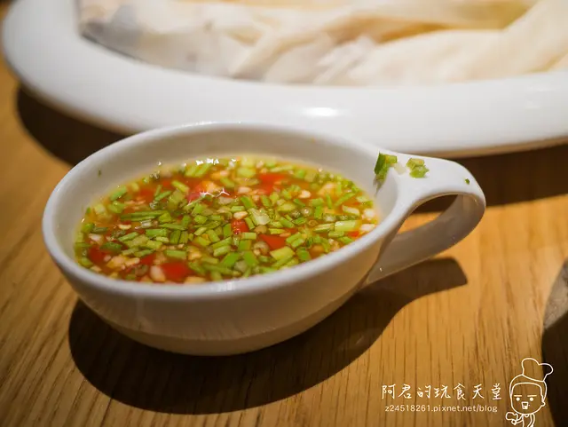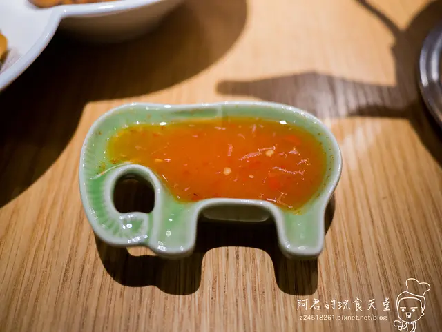 ▼另外還有附泰式酸辣醬,用大象圖案的盤子裝著,挺可愛。