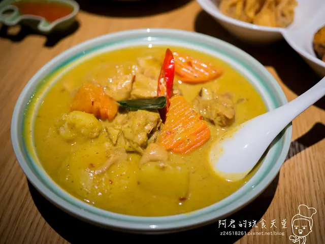 ▼黃咖哩雞,這道算是裡面最不辣的,料給滿又多又大塊,紅蘿蔔、馬鈴薯已經燉煮的軟爛綿密,雞肉則是筷子輕輕一撥就能骨肉分離。
