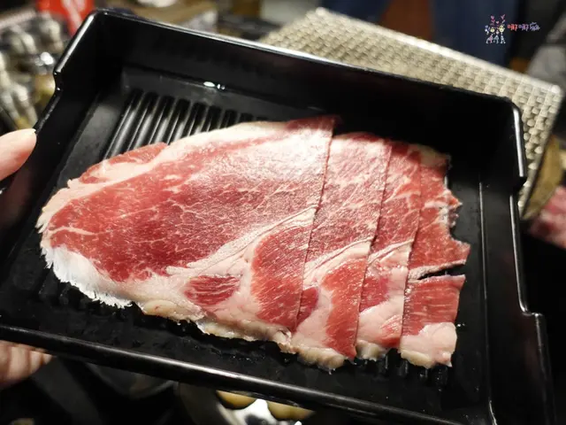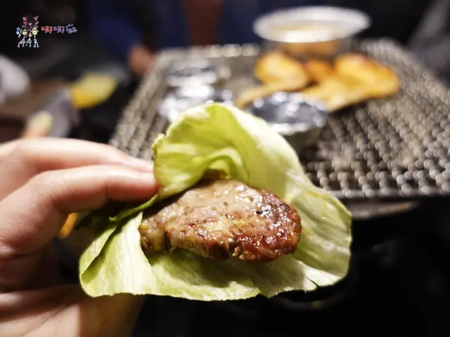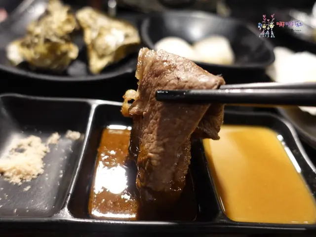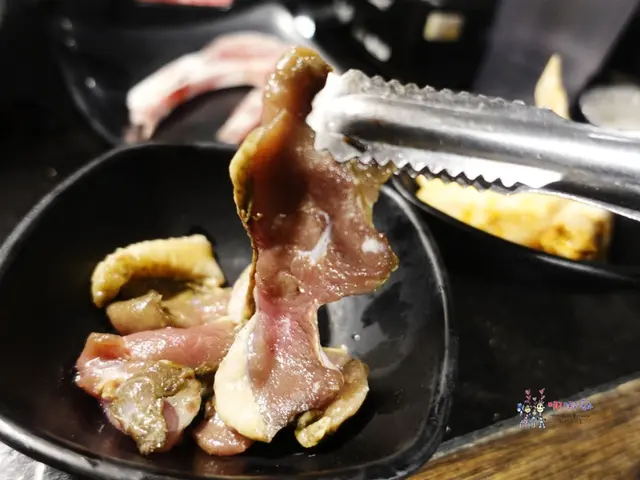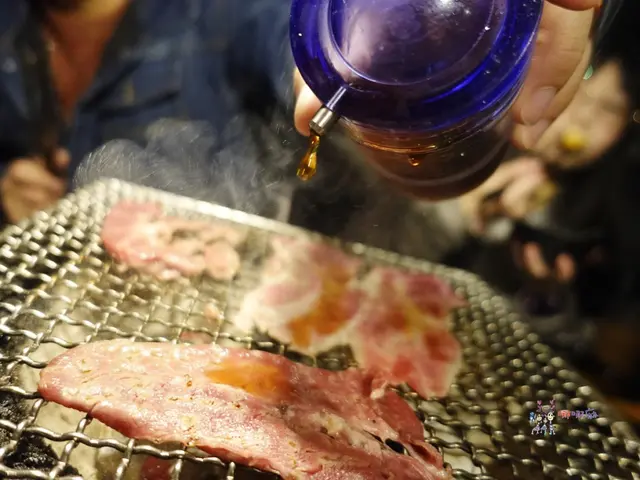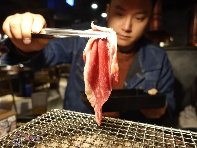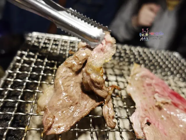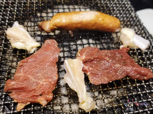 因為一開始放下肉的時候肉有一片沾在網子上,服務生教我們可以先塗一些店家特製醬油,可以增添風味而且也比較不容易黏網。