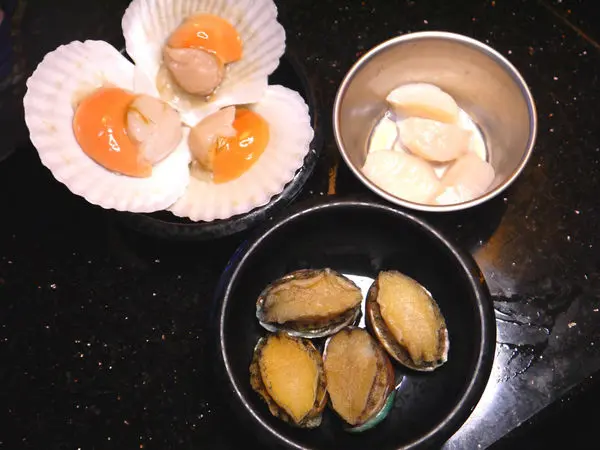 鮮活大扇貝、新鮮鮑魚、日本生食級干貝