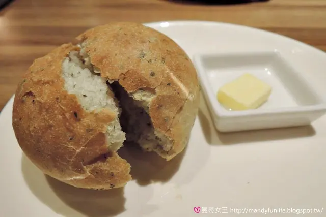 「義式香料麵包」香氣十足、口感鬆軟~ 服務生不時都會上前來詢問是否還需要麵包