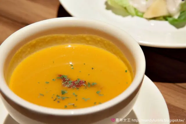 「南瓜濃湯」,口感很細緻沒有顆粒感,因為沒有加鮮奶油,