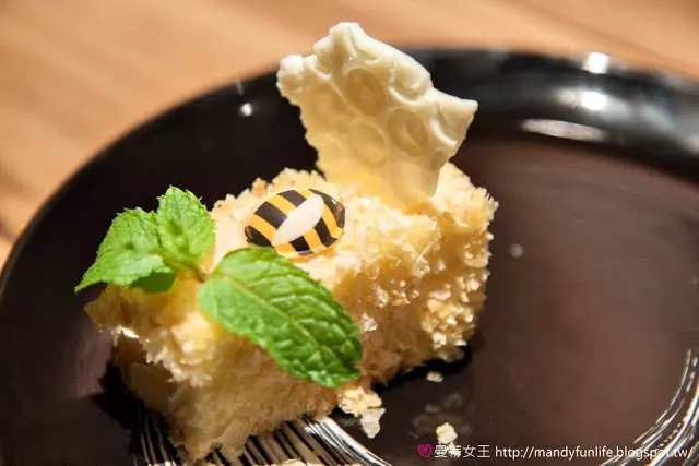 「檸檬起酥蛋糕」,就和印象中的檸檬蛋糕口味一樣,上面的蜜蜂裝飾是白巧克力可食用。