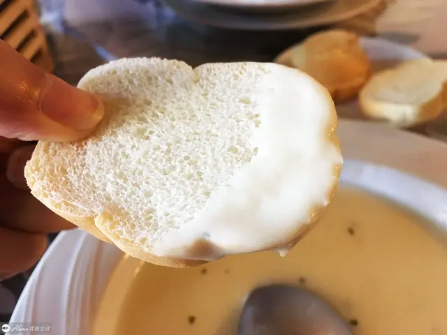 ▲沾著奶油玉米濃湯一起吃,麵包香氣和奶油超絕配,